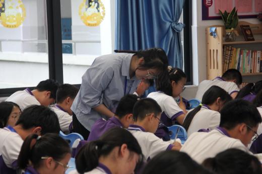 随后,领导们一同移步到日新楼,听两位实习老师精心准备的数学课堂。首先是实习老师刘思雨带来的课堂:《线段垂直平分线的性质与判定》。然后是由实习老师刘欢带来的课堂:《全等三角形第一课时性质》。在课堂中,实习老师们讲课生动有特色,举手投足间都尽显自信与自然。