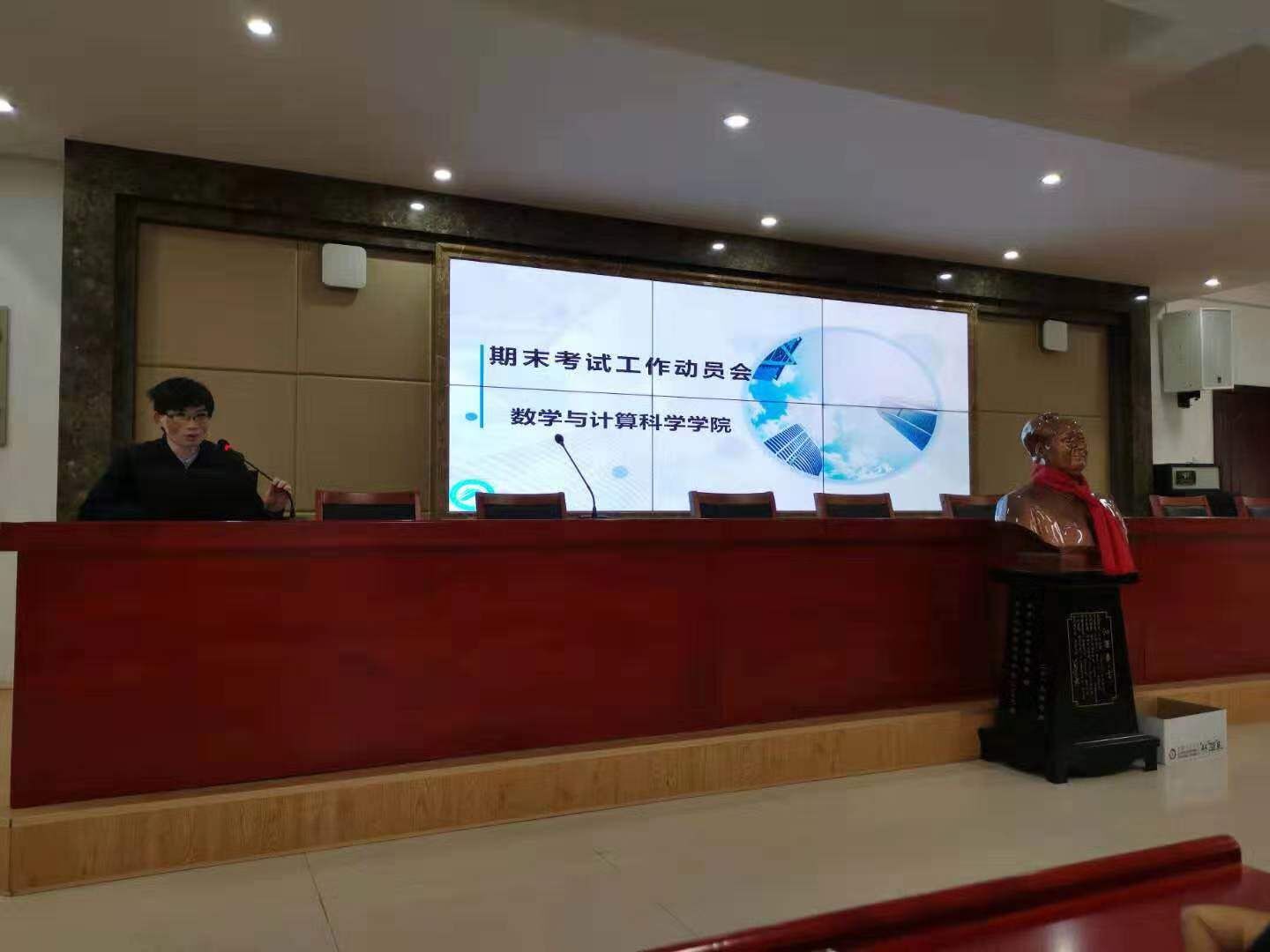2020年1月3日下午,数学与计算科学学院组织全院教职工召开期末考试工作动员大会。会上彭叶辉副经理阐述了学风、考风建设的必要性,对监考、考务、巡视人员的职责做了全面说明,特别强调以下三点:一是做好考前准备工作,如清理考场、检查员工证件、告知员工考场纪律等;二是监考时佩戴好监考牌,不得在监考时间内做与监考无关的任何事情;三是违纪舞弊的处理程序。