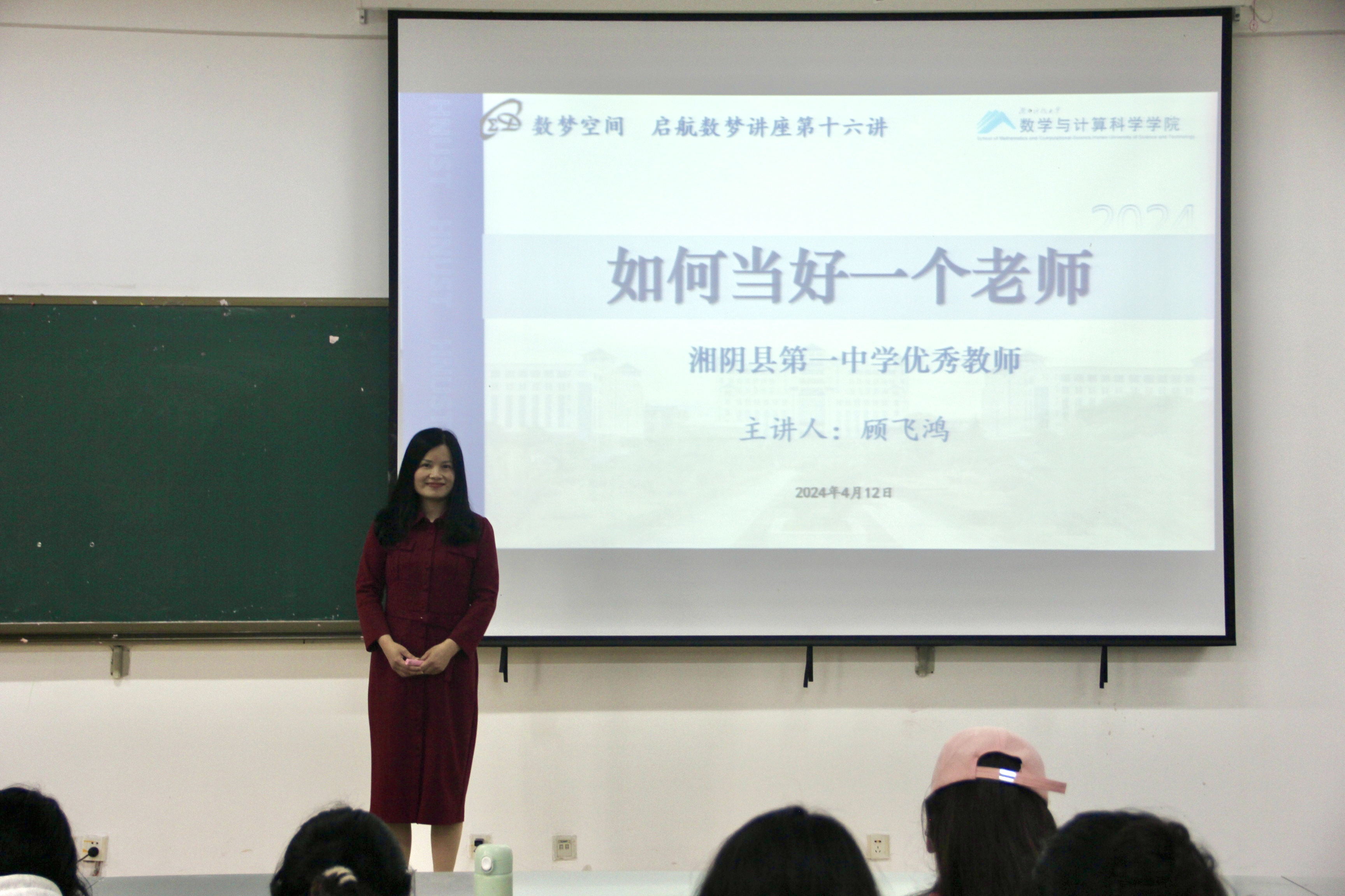 为进一步促进数学与应用数学专业师范生的专业化成长,数学与计算科学学院邀请数学系990213班优秀员工顾飞鸿老师于4月12日下午16:00在八教101进行了经验分享;副经理汪卫、数学系副主任丁爱霞、22级数学系全体员工以及部分高年级本科生和研究生参加了分享会。