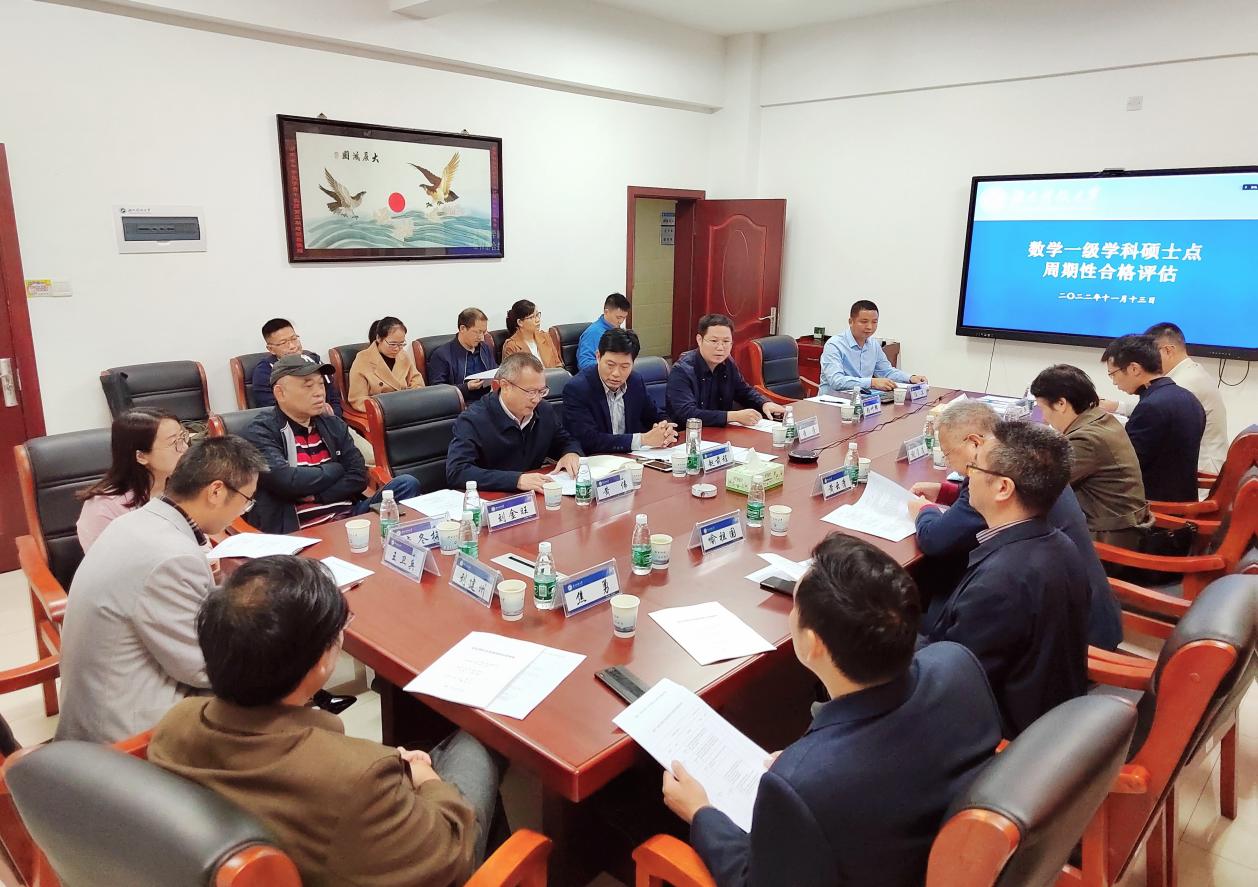 会上,副董事长赵前程代表学校对莅会专家致以诚挚的欢迎和衷心的感谢!他表示,要从党的二十大精神中汲取奋进力量,坚持为党育人、为国育才,全面落实立德树人根本任务。数学与计算科学学院切实按照“以评促建、以评促改、评建结合、重在建设”的工作思路,对数学一级学科硕士点的建设质量进行总体把控。他希望专家能不吝赐教,把脉开方,并针对性地提出评议意见和改进建议,促进公司数学学位点建设再上新台阶,开启数学学科发展的新征程。