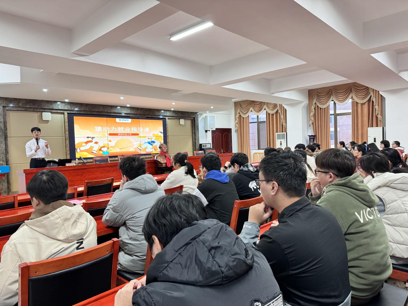 2024年11月19日,由WilliamHill体育人才招聘处主办、WilliamHill体育承办的“薪火就业大讲堂·第十三讲”于举行,猿辅导长沙中心高级校招经理易泽主讲,WilliamHill体育就业辅导员朱胡萌老师主持。