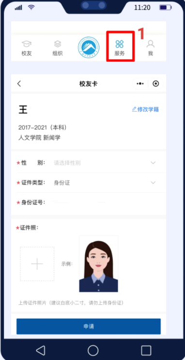 注册审核通过后,点击底部导航栏“服务”页面,然后再点击“员工卡”按照指引进行信息填写并申请,填写完毕后,就可以领取自己的员工卡啦!具体步骤如下: