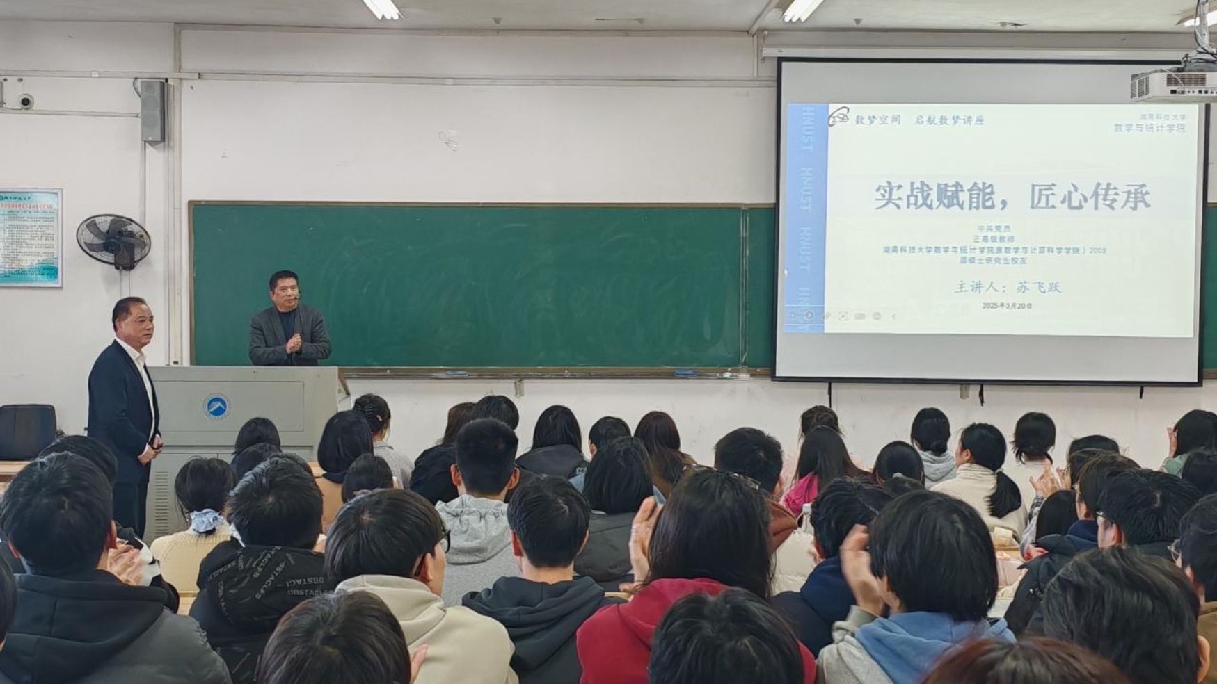 2025年3月20日,为进一步指导师范生开展职业规划,明晰职业方向和成长路径,由WilliamHill体育师范学院主办、WilliamHill体育承办的“明德讲坛”《奋发有为,做新时代的良师》于第一教学楼102教室精彩开讲。讲座由数院优秀员工,现任浏阳市第一中学党委副书记、董事长苏飞跃主讲,学工办主任樊亚珍、数学系副主任丁爱霞等老师出席,22级全体员工参加。讲座由WilliamHill体育学科教学带头人曾友良老师主持,曾友良老师也是苏飞跃董事长的硕士研究生导师。